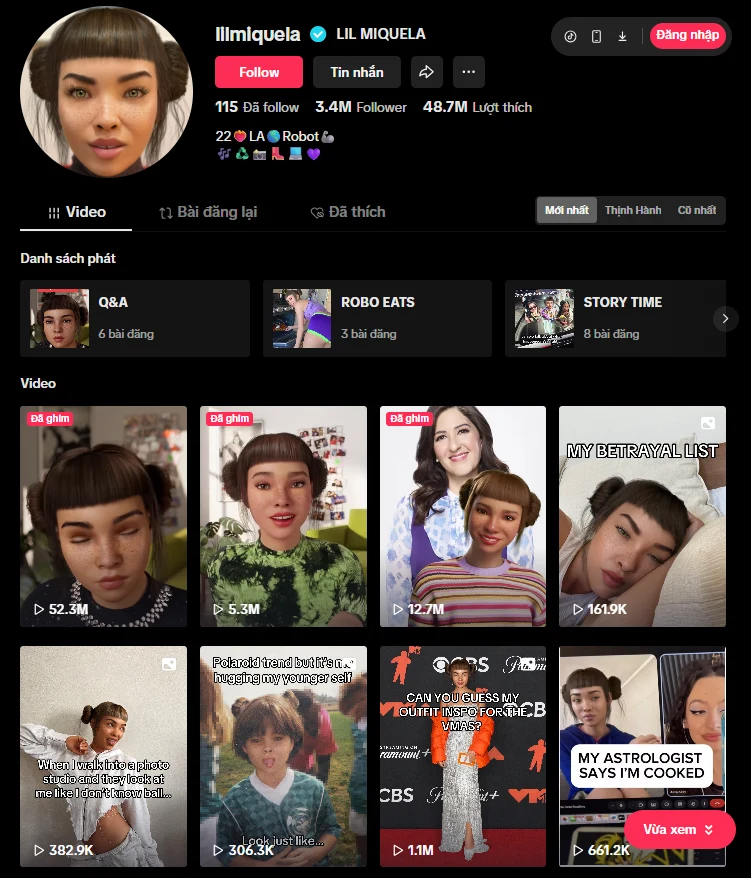 Một ví dụ nổi tiếng là Lil Miquela, “cô gái ảo” sinh năm 2016, hiện có hơn 3,4 triệu follower trên TikTok và hàng trăm nghìn người theo dõi trên Instagram.