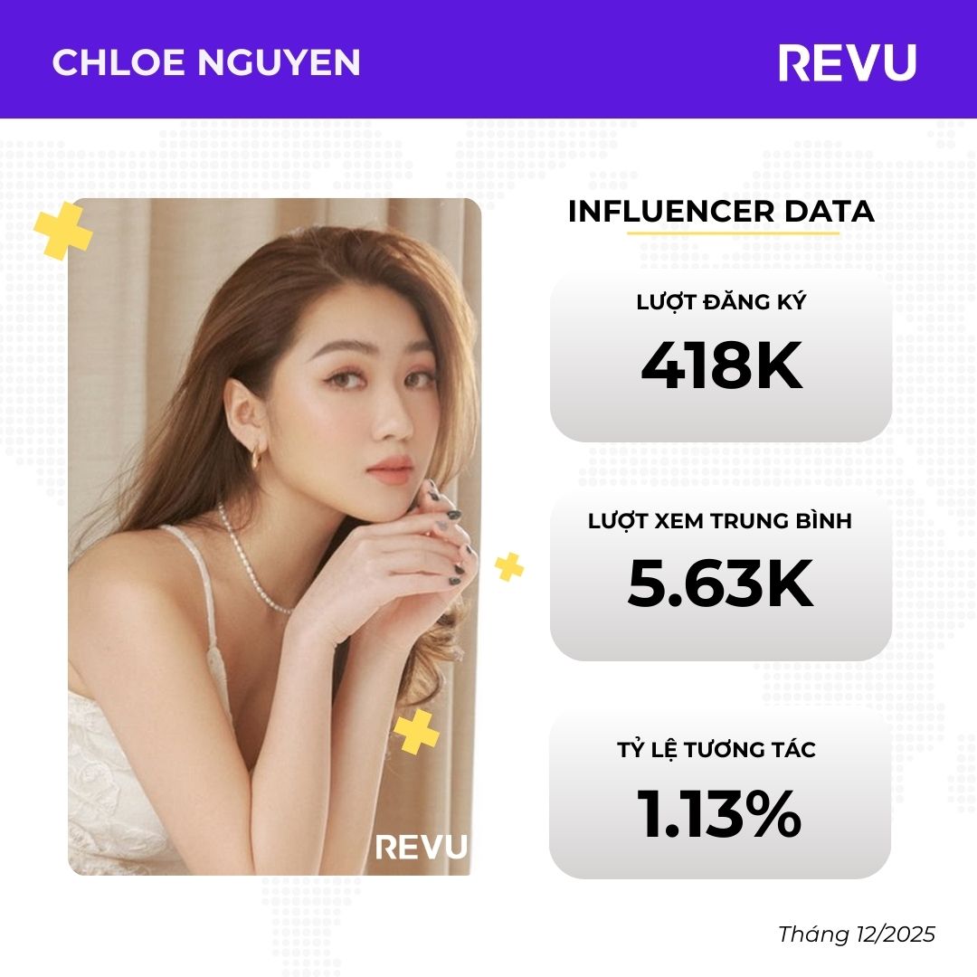 Chloe Nguyen được biết đến với hình ảnh sang trọng, mang phong cách tiểu thư. Nội dung tập trung vào skincare, mỹ phẩm cao cấp và lifestyle.