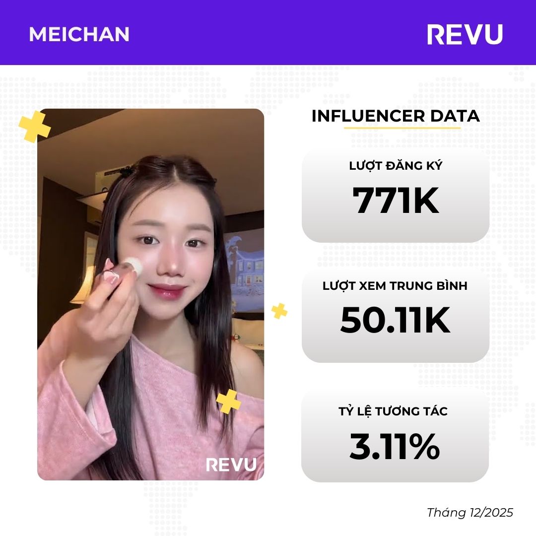 Meichan xây dựng nội dung xoay quanh skincare, makeup và chia sẻ trải nghiệm cá nhân. Kênh có mức tương tác cao so với quy mô followers.