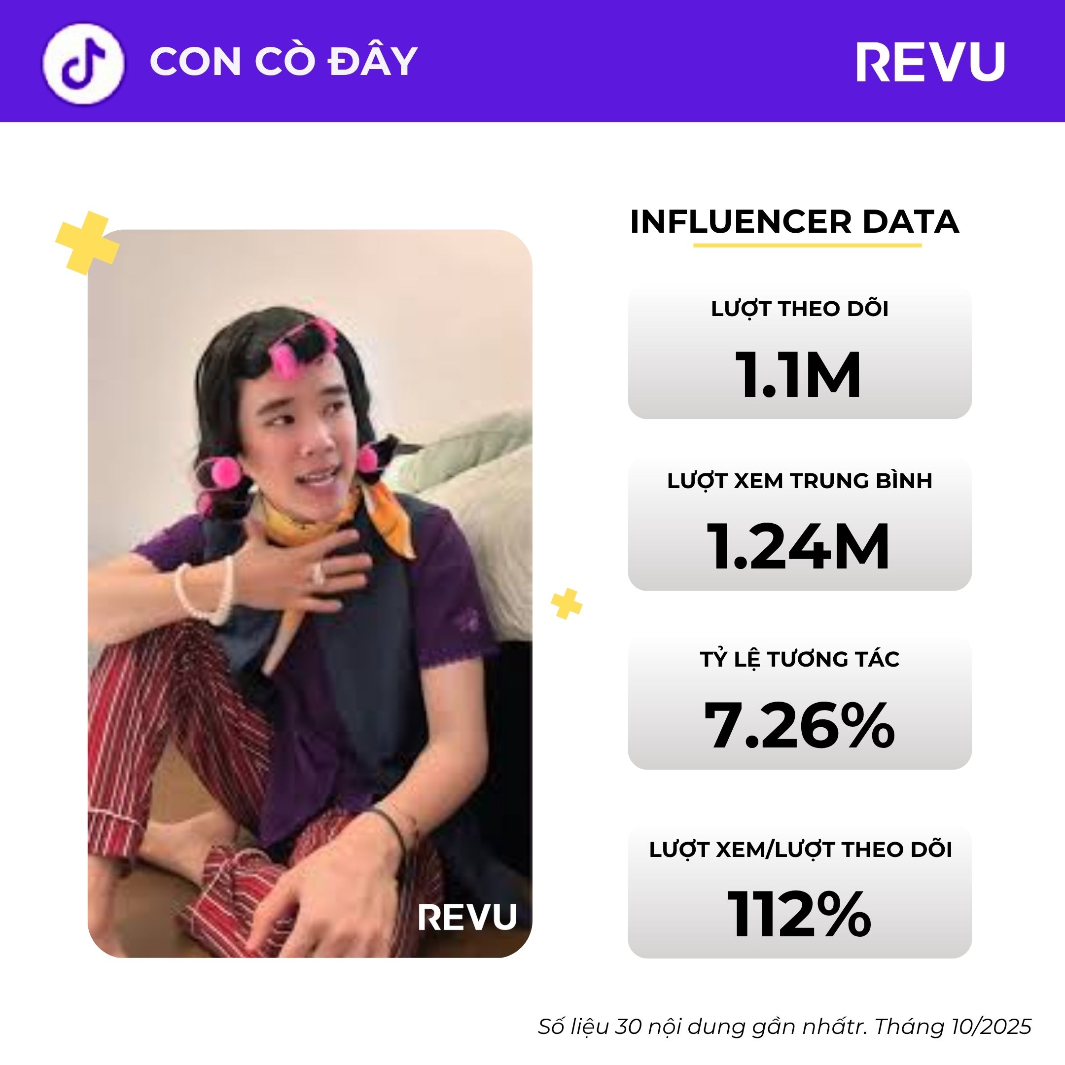 Con Cò Đây đang là một hiện tượng sáng tạo nội dung đáng chú ý tại Việt Nam – không chỉ vì con số người theo dõi mà bởi vì cách anh kể chuyện, tạo hình nhân vật và chạm đến cảm xúc người xem. Với thương hiệu đang tìm kiếm một gương mặt đa năng – hài hước mà có chiều sâu, thân thiện mà lan tỏa tốt – thì Con Cò Đây là một lựa chọn đáng cân nhắc.