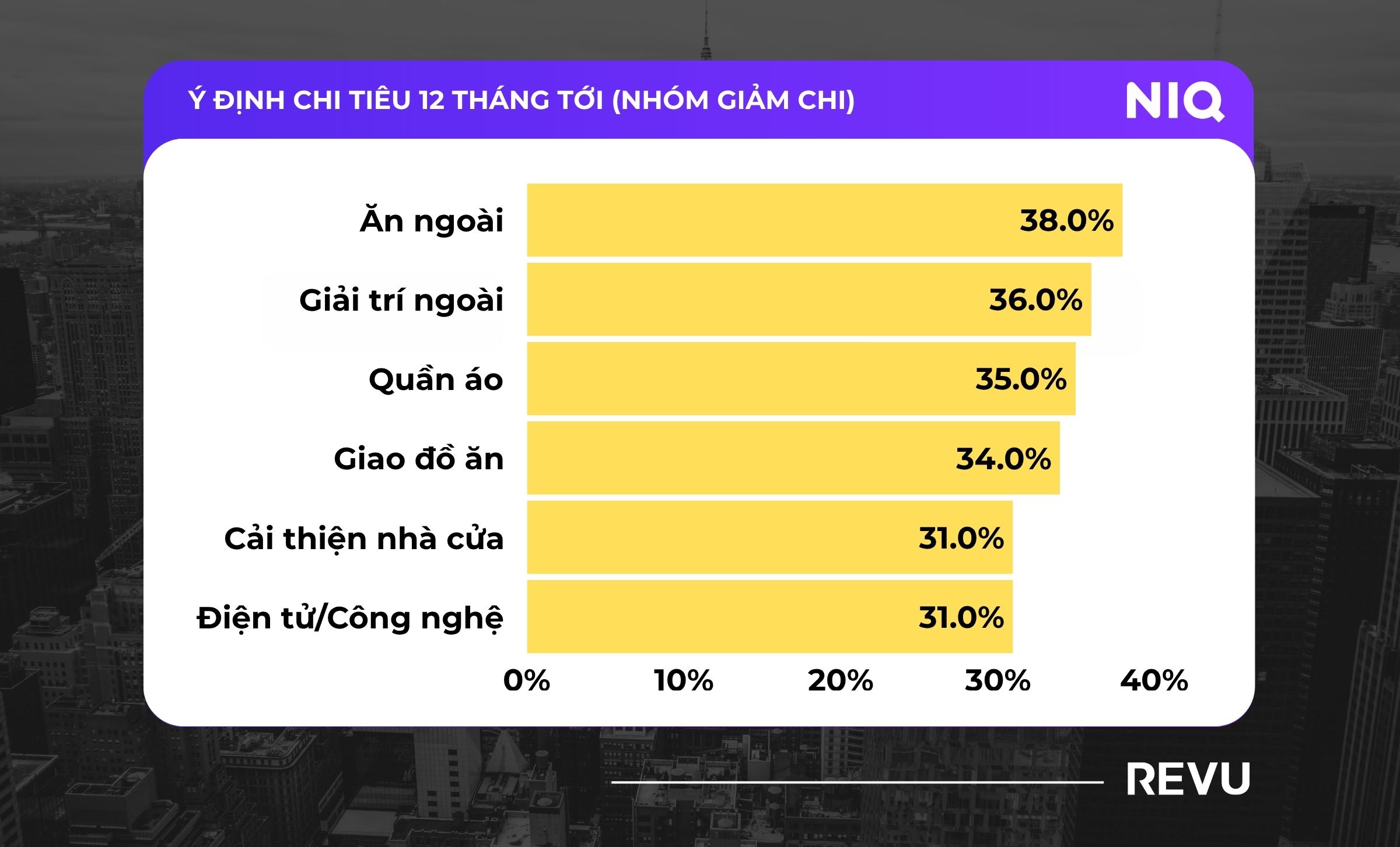 Người tiêu dùng đang cắt giảm mạnh ở các danh mục như ăn ngoài, giải trí, thời trang, trong khi vẫn giữ hoặc tăng chi cho tiện ích, tạp hóa, y tế và giáo dục.