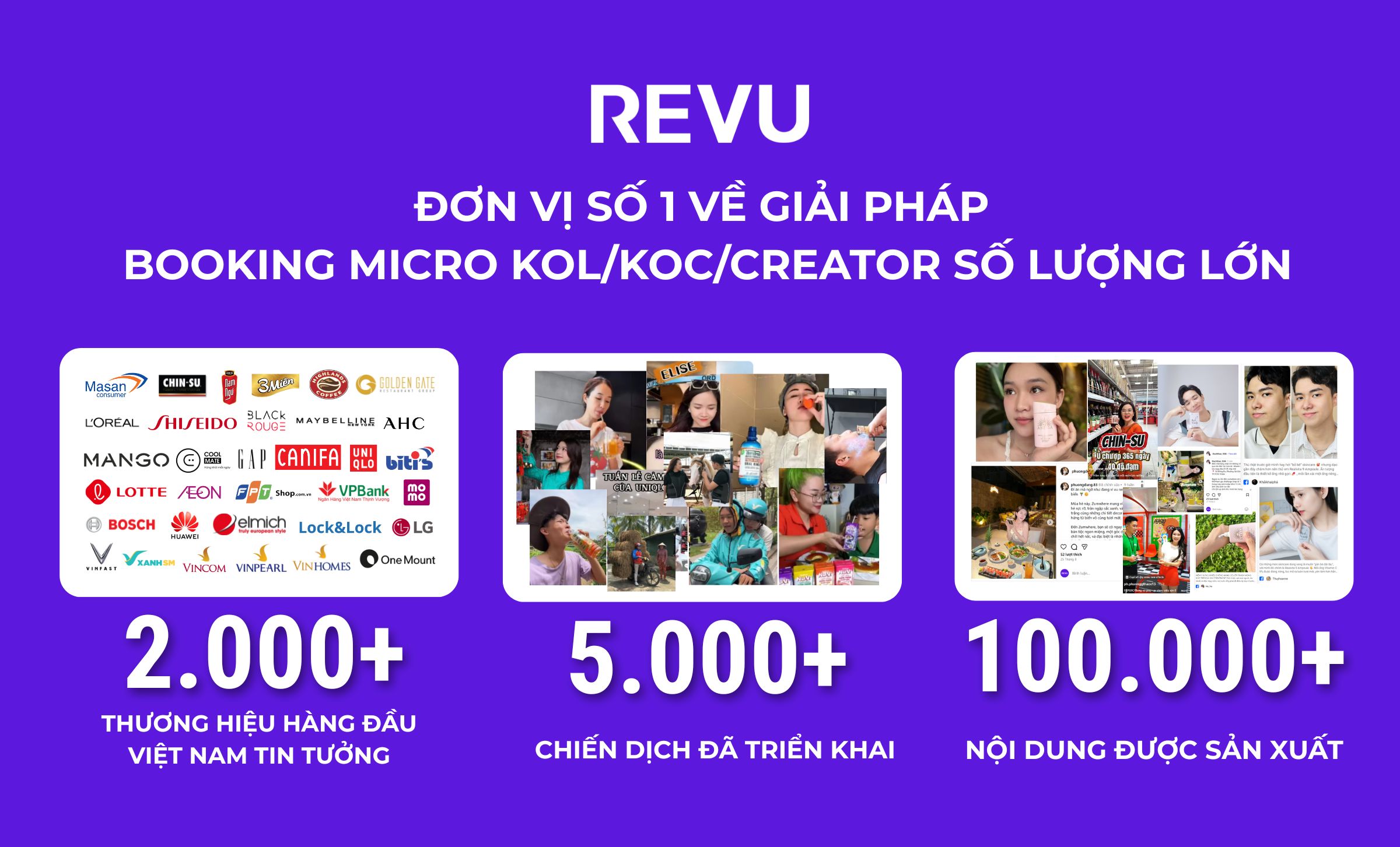 - REVU đã đồng triển khai hơn 4.000 chiến dịch Influencer-KOC-KOL Marketing.