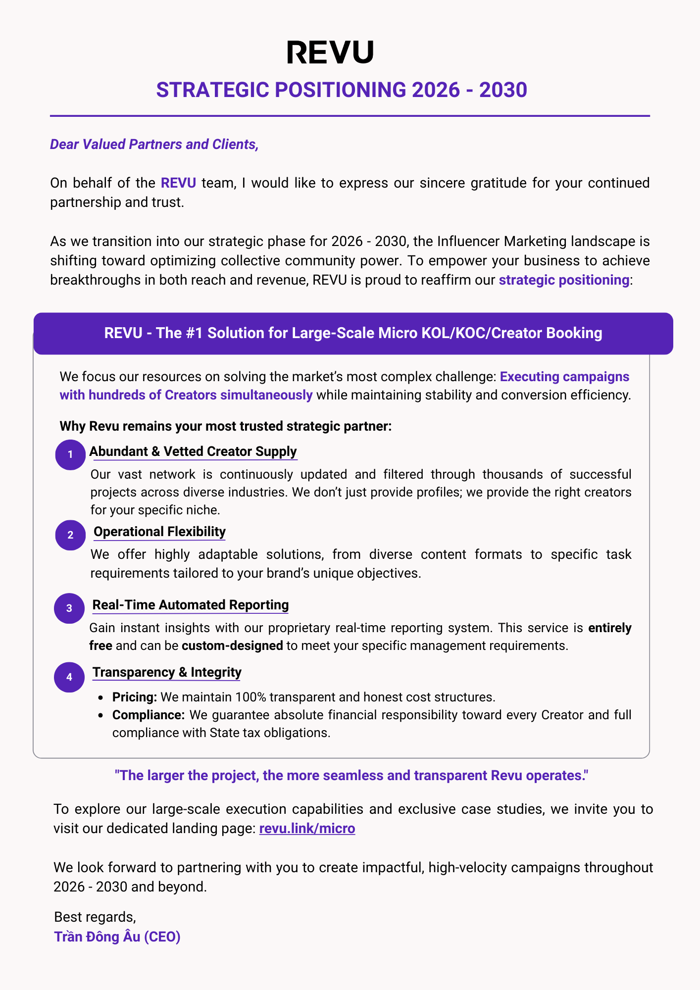 As we transition into our strategic phase for 2026 – 2030, the Influencer Marketing landscape is shifting toward optimizing collective community power. To empower your business to achieve breakthroughs in both reach and revenue, Revu is proud to reaffirm our core strategic positioning: