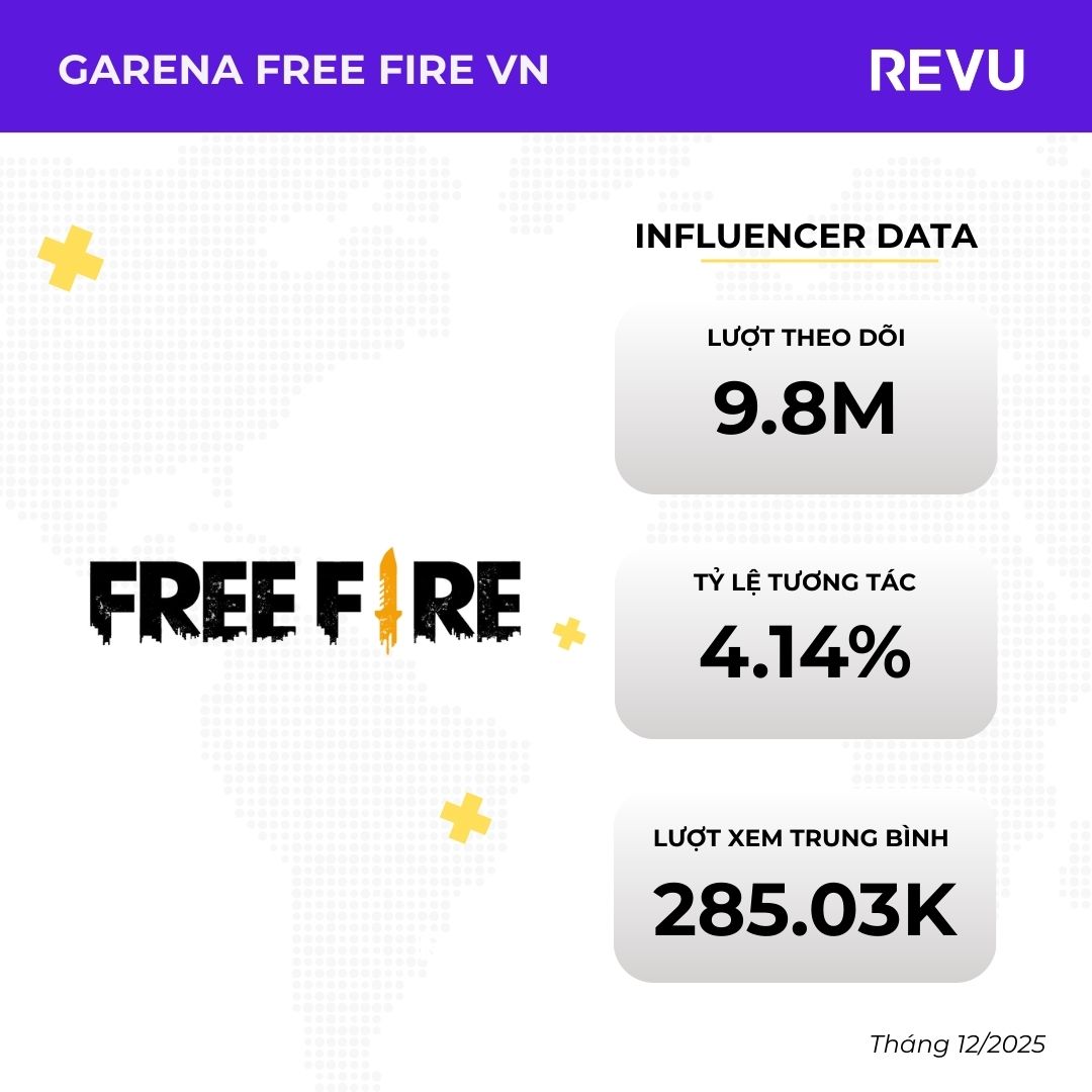 Đây là kênh TikTok chính thức của Free Fire tại Việt Nam. Nội dung tập trung vào cập nhật phiên bản, giới thiệu nhân vật – skin mới, highlight game và các hoạt động cộng đồng. Với lợi thế là kênh chính chủ, Free Fire VN vừa mang tính thông tin, vừa tạo được sức lan tỏa mạnh trong cộng đồng game thủ mobile, đặc biệt là giới trẻ.
