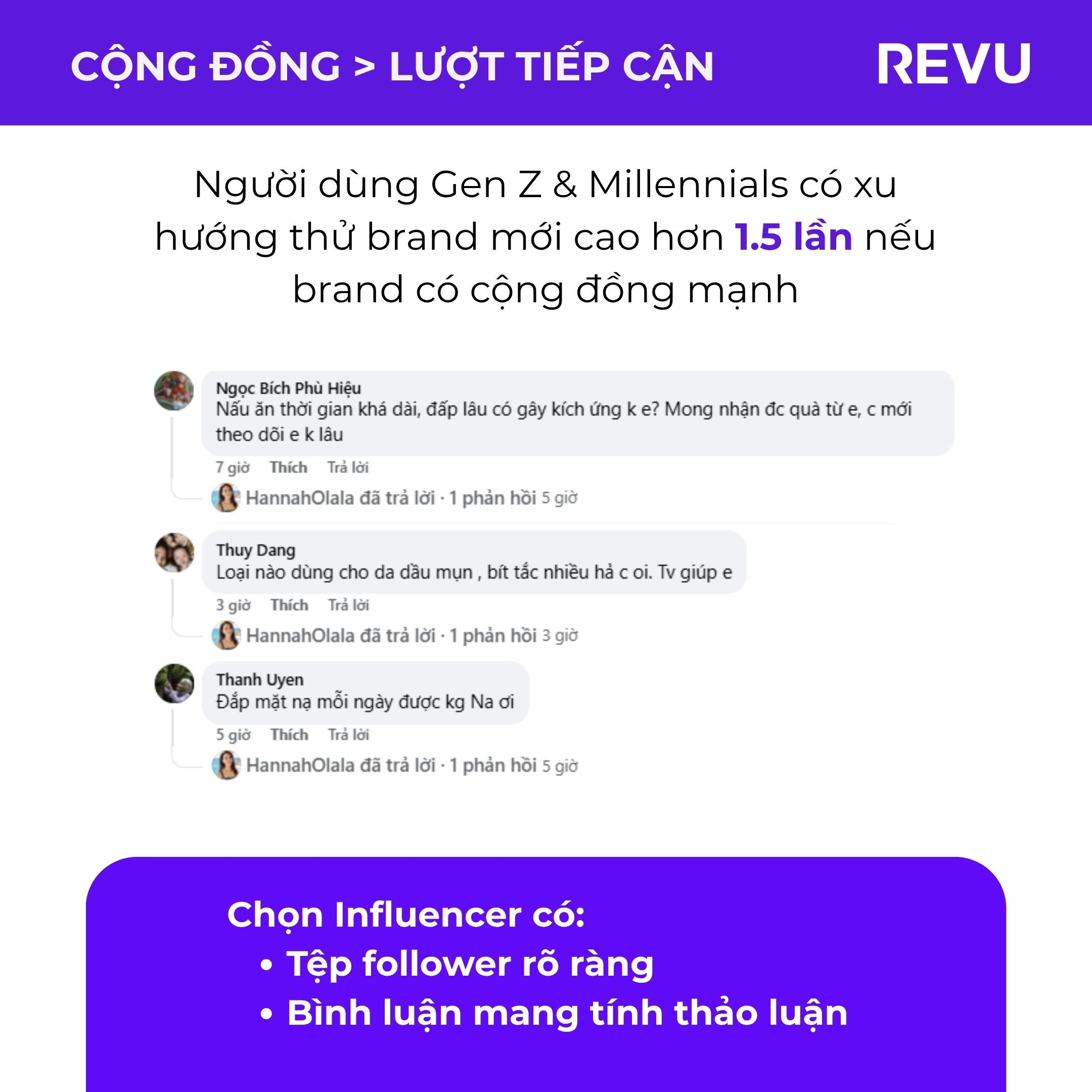 - Người dùng Gen Z & Millennials có khả năng thử thương hiệu mới cao hơn 1.5 lần nếu thương hiệu có cộng đồng mạnh