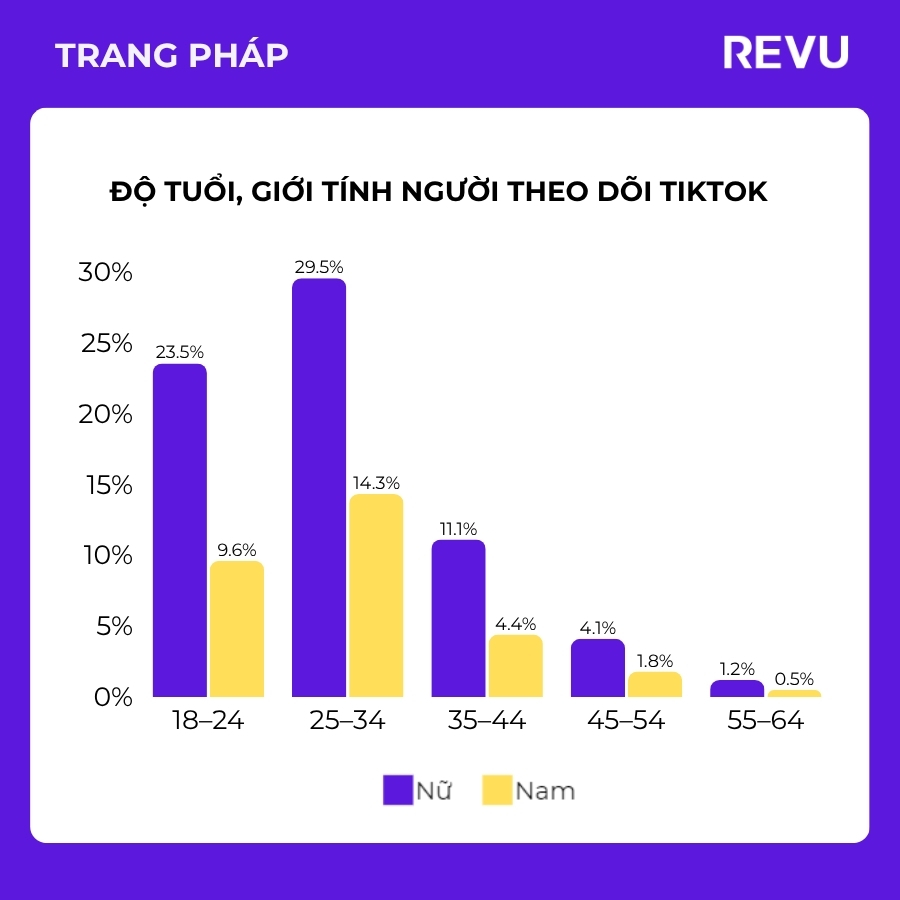 - Nhóm tuổi 18–34 chiếm phần lớn